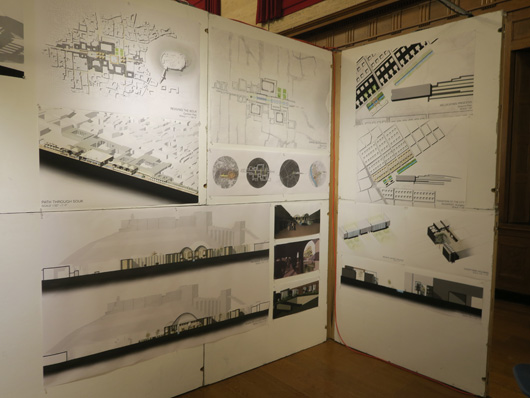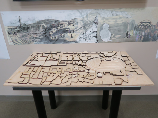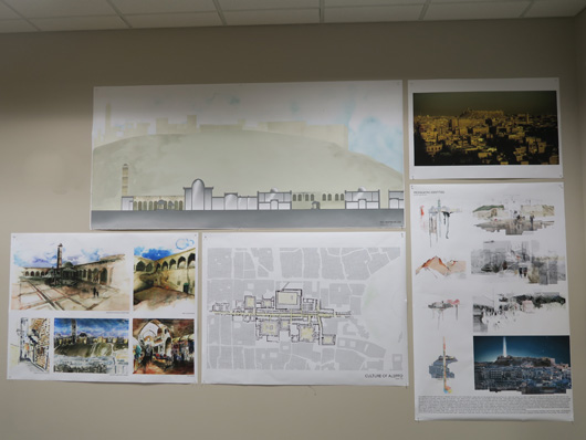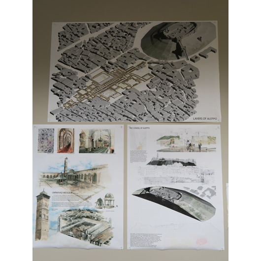 For their designs for refugee journey sites, students worked with refugee camps, or over-sea arrival in Greece, or re-settlement in European cities. For their designs in rebuilding Aleppo, students worked on sites at the citadel, souk or khans in the historical heart. The purpose of their projects included housing or temporary housing, education, and commerce in rebuilding the citadel and souk, and designs for the preservation of the archeology and memory of the pre-war city.